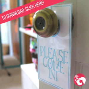 To help us (and YOU) with the idea of “polite privacy” in your house, I’ve developed this simple, ::printable:: doorknob hanger.