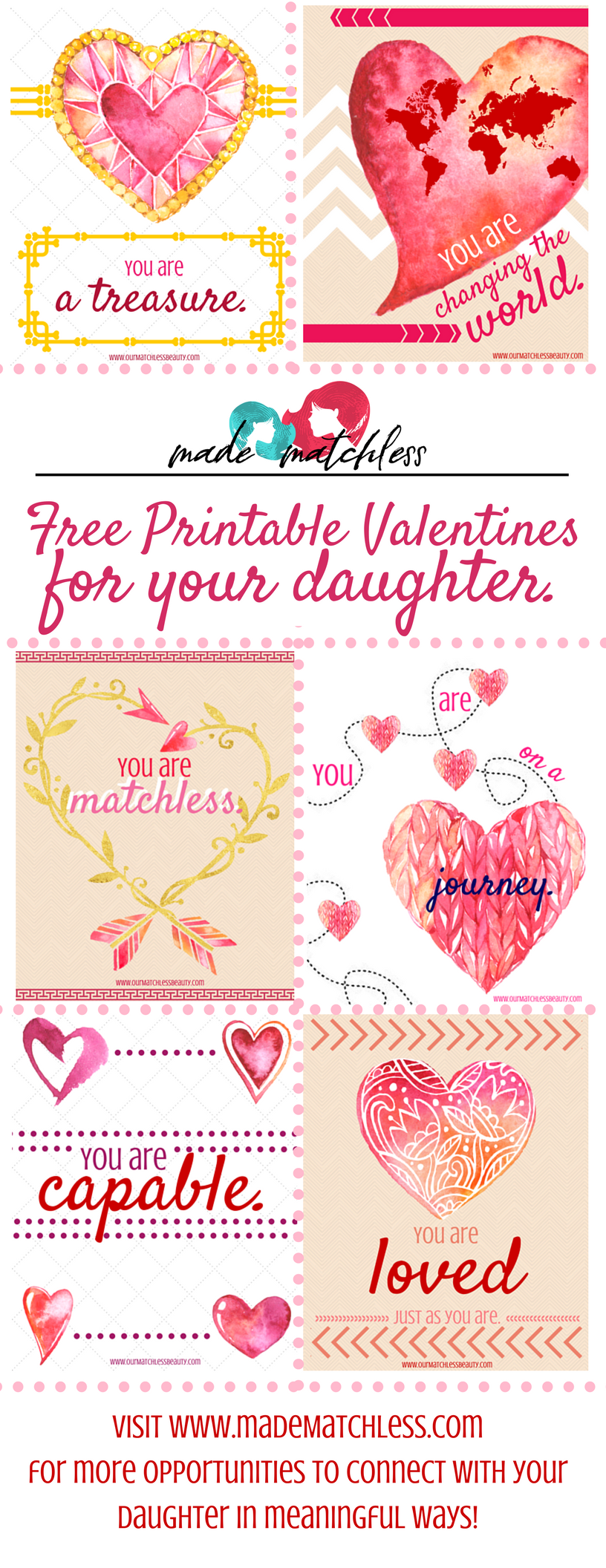 I’m so thankful that I can share these resources with you! If these valentines have enhanced your relationship with your daughter in any way, please share your story in the comments! After all, part of the Made Matchless mission is to help moms and daughters have enriched and meaningful experiences to grow and deepen their relationships.