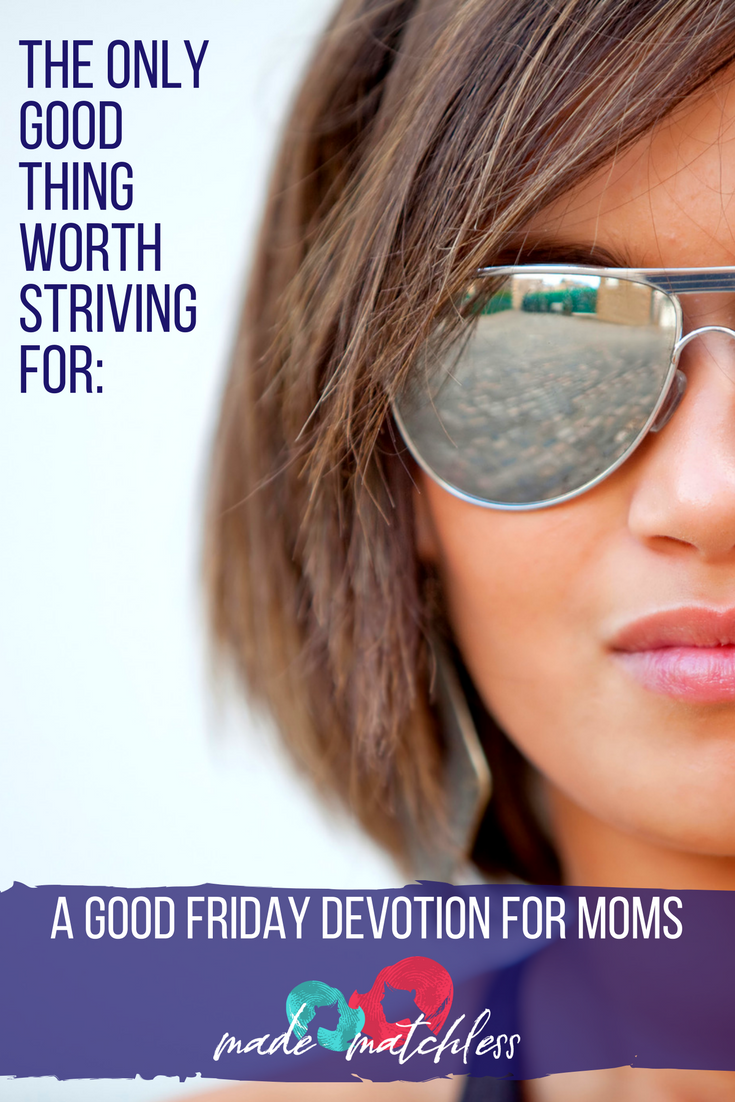 The Only Good Thing Worth Striving For: a Good Friday Devotion for Moms is from a series of devotions meant to prepare moms and girls for Good Friday and, ultimately, Resurrection Sunday. In this series, I’ve shared three devos already for girls ages 4-8 , 9-12 , and 13-18. Download the printable version of this devo here. Please note that the printable version has my old website name on it. If you are printing to share, please be so kind as to write MadeMatchless.com on the print!