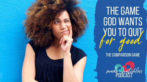 “The Game God Wants You to Quit for Good:  The Comparison Game” Women are really good at playing the comparison game, whether looking up to others as our standard or down to others from our platform of superiority.  Many of us do a little of both!  But what’s truly at the heart of the comparison game?  Are we doomed to living a life in constant watch of others, wishing for what we don’t have or waiting for others to meet our high expectations?  Or is the comparison game one that we can quit for good?  Listen to this latest podcast (part 1) on how women compare, what is truly the heart of the matter, and what the ultimate solution is.
