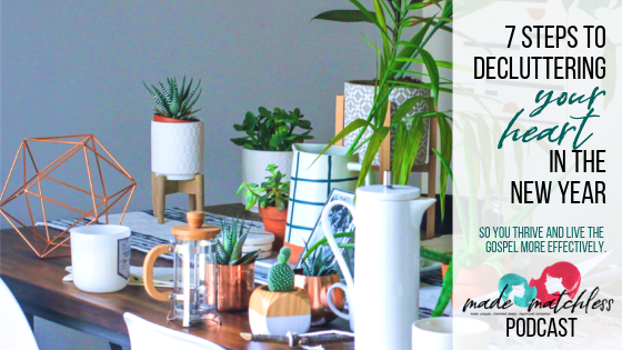 “7 Steps to Decluttering Your Heart in the New Year”.  Everyone wants a clutter-free home where they can live and breathe and function.  So we  establish new patterns of keeping our home clean, of thinking differently about how we live, and evaluating what really matters.  And if we’re not careful, the clutter in our homes can pile up again!  But did you know you can also have clutter of the heart?  Heart-clutter can keep you from thriving, maintaining healthy relationships,  and living the gospel effectively.  In this month’s podcast, listen for 7 common heart-clutters as well as 7 steps you can take to make your heart clutter-free. (ARCHIVED.  LISTEN TO ALL ARCHIVED PODCASTS BY SUBSCRIBING HERE)