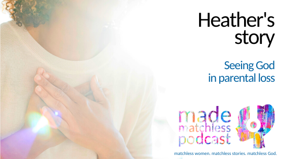 “Heather’s Story: Seeing God in Parental Loss”.  In spite of her popularity at school and confident demeanor, Heather grew up in a tough home, struggling with insecurities her whole life.  But as she shares in her story, God proved again and again to her that he is a redeeming God, even up until her father’s death.  Listen to Heather’s matchless story about pain, emptiness, prayer, hope, love and the God who helped her see her dying father through the eyes of grace.  THIS PODCAST IS ARCHIVED, BUT IS AVAILABLE TO ALL PODCAST SUBSCRIBERS!  TO LISTEN TO THIS PODCAST (AS WELL AS EVERY PODCAST FROM THE PAST) SUBSCRIBE HERE.