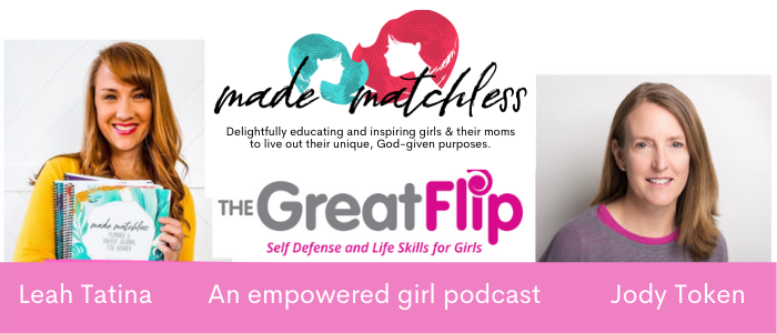 I was so honored to be asked to share about “girl power vs. God-power” on my friend Jody Token’s podcast from “The Great Flip”, a self defense and life skills program for girls.  Take a listen here and be sure to check out this amazing, Christ-centered program that teaches girls about defending themselves and embracing true empowerment.  Click the image above or click here to listen.